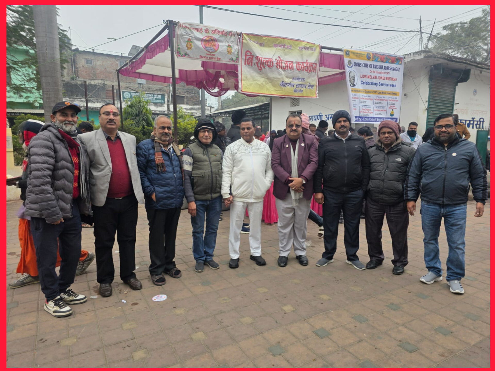 त्यसैगरी सो अवसरमा मित्र राष्ट्र भारत रक्सौल लायन्स क्लब का अध्यक्ष समाजसेवी बिमल सराफले लायन्स क्लबका संस्थापक मेल्विन जोन्स को बर्षगाठ को शुभअवसर पारेर विश्व भरी नै साप्ताहब्यापी भोको कार्यक्रम आयोजना गर्ने क्रममा आज लायन्स क्लब आदर्शनगर बिरगंजले बिरगंज समाज सेवाको सुअभियान्मा निशुल्क भोजन कार्यक्रमको आयोजना गरि हामिलाइ यहाँ निमन्त्रणा दिनु भो सच्चिकै यहाँ आउदा सेवा गर्न पाउदा मन रमाएको छ किनभने दिनदुखी असहायको सेवा सहयोग नै हामी मानवको लागि सबै भन्दा ठूलो धर्म र कर्म भएकोले यो अभियानमा सेवा सहयोग हातेमालो गर्न सम्पुर्णलाई दिनदुखी असहायको सेवा सहयोग गरि मानवता बलियो बनाउन आग्रह गरे ।