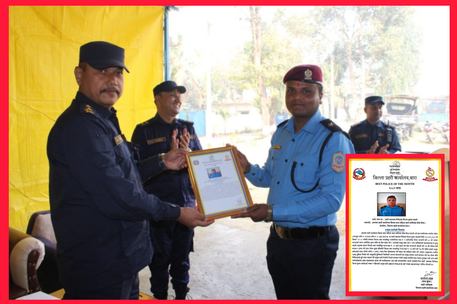 बाराका असई विजयकुमार महतो ‘बेस्ट पुलिस अफ द मन्थ’ घोषित, दोहोरो हत्याकाण्डका अभियुक्तलाई ८ घण्टाभित्रै पक्राउ गर्न सफल